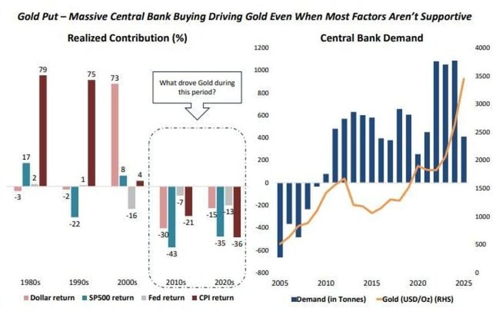 • Diversification away from US Treasuries – sanctions risk and the “weaponization” of the dollar have made gold a neutral reserve asset.